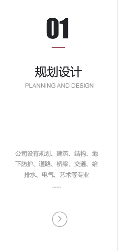 公司設(shè)有規(guī)劃、建筑、結(jié)構(gòu)、地下防護(hù)、道路、橋梁、交通、給排水、電氣、暖通、園林、環(huán)境藝術(shù)等專業(yè)。是目前我市擁有專業(yè)資質(zhì)及技術(shù)工種門類較全的綜合設(shè)計(jì)單位......